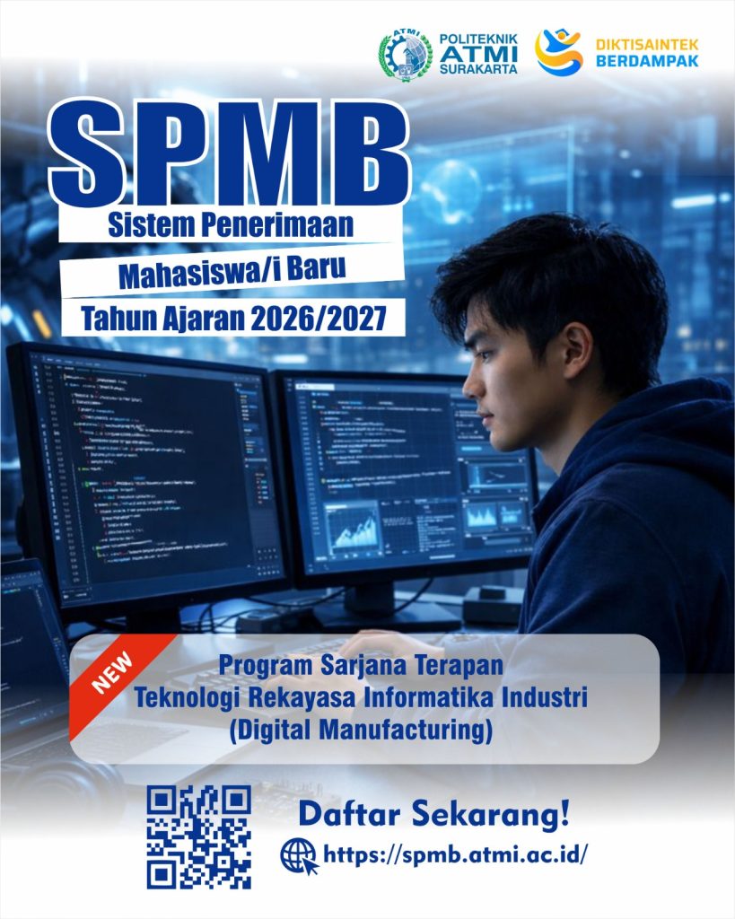 Politeknik ATMI Surakarta membuka pendaftaran mahasiswa baru! Bergabunglah untuk menempuh pendidikan vokasi unggul yang memadukan keahlian teknis, inovasi digital, dan karakter profesional, serta siapkan diri Anda menjadi tenaga ahli yang siap bersaing di dunia industri modern. Daftar sekarang dan wujudkan masa depan karier Anda!